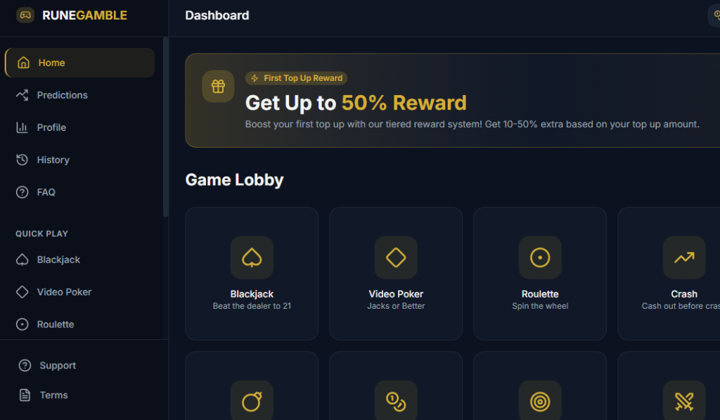 The RuneScape Casino offers a variety of games, including vibrant slot machines featuring magical themes, as well as skill-based table games such as Blackjack and Poker. Each game is designed to enhance the overall gaming experience.